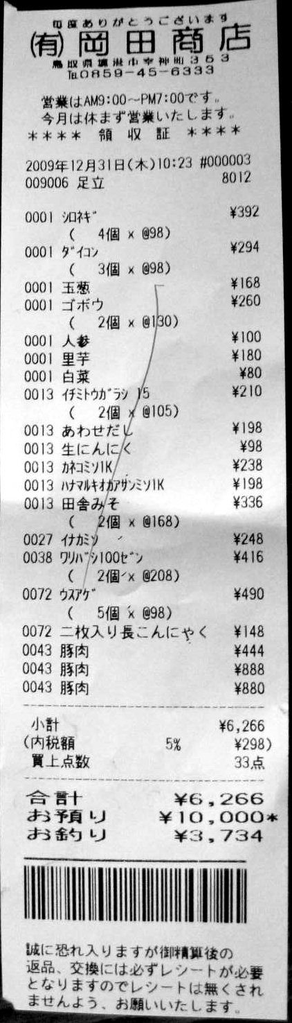 | 6,266 | 豚汁材料(岡田商店) | 繰越金 | 2.000 |